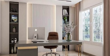 Ruang kerja serba putih dapat membantu meningkatkan fokus dan produktivitas. Meja kerja putih berpadu dengan rak dinding minimalis menciptakan suasana rapi dan tidak mengganggu konsentrasi. Tambahkan tanaman hijau kecil untuk memperkuat kesan segar dan alami. Pilih kursi ergonomis putih agar kenyamanan tetap maksimal.