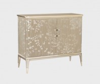 A shimmer of light is all it takes to transform a room with beauty. This signature piece stands out from the crowd with its elegant shimmering exterior and plated Whisper of Gold trim, ferrules, and hardware. A delicate silkscreened leaf pattern gives it modern organic character while inside you’ll find adjustable shelves, a drawer, and wire management. Inspired by our best-selling TURN A NEW LEAF buffet, this smartly scaled piece is perfect for urban spaces.