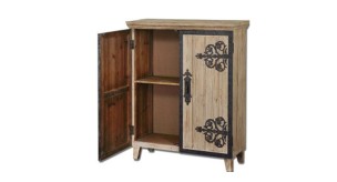 ABELARDO CONSOLE CABINET / UT 24309 ightly stained, rustic solid fir wood with wrought iron metal details and one interior shelf. DImension : 107x36x97 Cm Material : Wood Weight : - By Malindafurniture