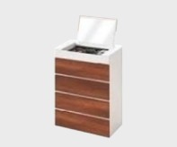 Elegant dual-toned Scandinavian design. 4 spacious drawers. Lift up mirror with storage box. High quality wood laminate. Natural wood grain & texture. Space saving & multipurpose..