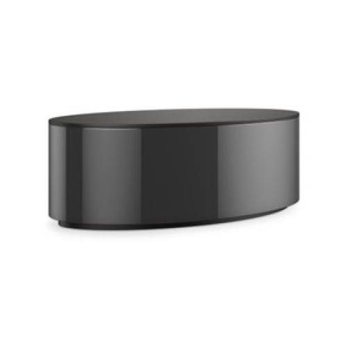 A wide, smooth-surfaced case gleams in Deep Bronze to make his oval cocktail table the perfect modern touch in front of a sofa. The top is Brushed Deep Bronze metal. The plinth base is Almost Black with hidden casters for mobility.