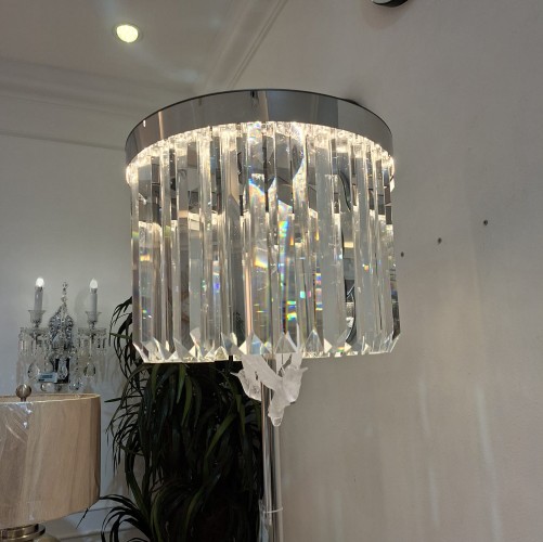 The Aile De Verre Table Lamp are built to complement one-of-a-kind spaces, bringing character to a room. The crystal and glaze bird part add a classy finish to your space. The lamps are fitted with an in-line dimmer for additional mood control.