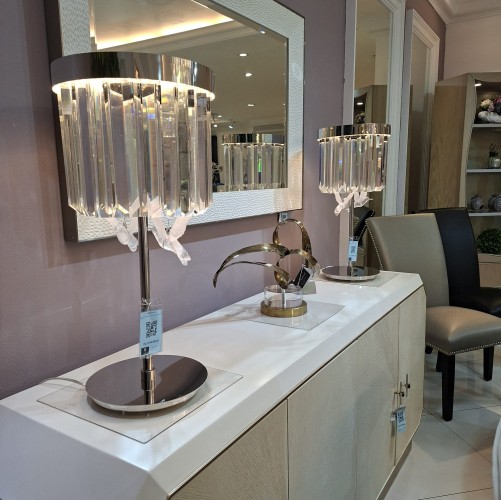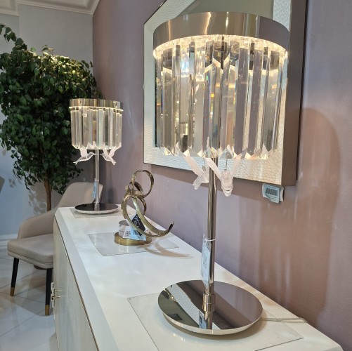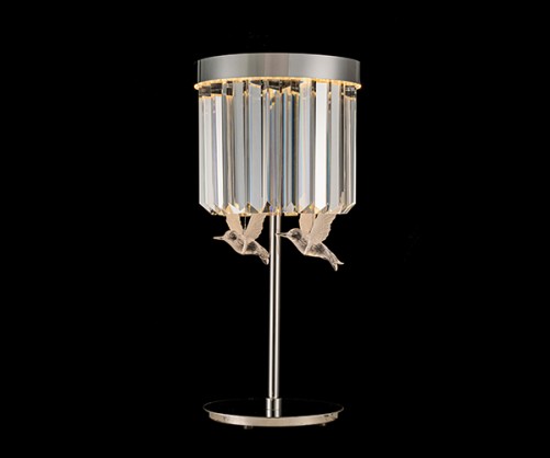 The Aile De Verre Table Lamp are built to complement one-of-a-kind spaces, bringing character to a room. The crystal and glaze bird part add a classy finish to your space. The lamps are fitted with an in-line dimmer for additional mood control. Details: Dimension : 30 x 30 x 64 cm Material : Metal Weight : 11,34 kg By Malindafurniture