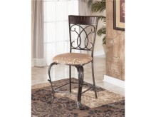 It comes in a set of two for coordinated convenience. Pair multiple sets for Add a handsome touch to your home décor with these Alyssa barstools from Signature Designs by Ashley. Constructed with a metal powder-coated frame and upholstered in light brown damask fabric, these stools will add classic style to your home.