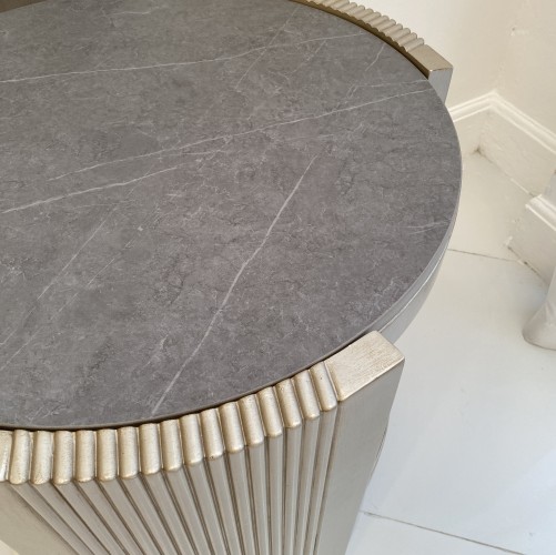 Arkasa End Table (CH 14-LV01503) Sintered Stone Top & Champagne Finish contemporer style, high end California Home