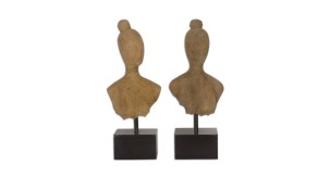 Naturally carved mango wood with matte black metal bases. sizes: sm-7x16x5, lg-7x17x5. Arlie Sculptures Set of 2 (UT 19821) Dimension : W 18 cm x D 12 cm x H 42 cm Material : Wood, Metal Weight : 5 kg By Malindafurniture