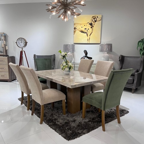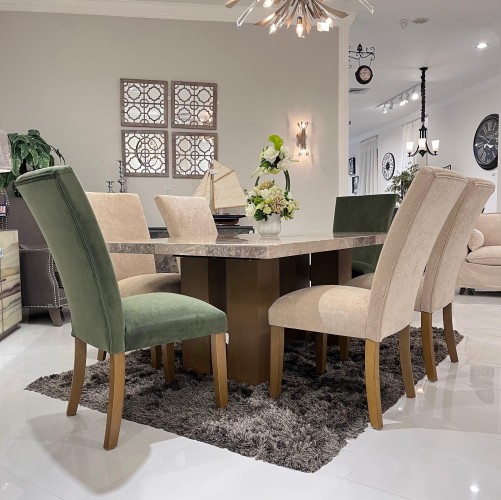Our Artemis Dining Collection? Absolutely marble-lous. Go ahead, prepare for compliments thanks to the modern clean lines, showstopping marble and sturdy pedestal base. It’s the perfect blend of elegance and durability for your dining space.