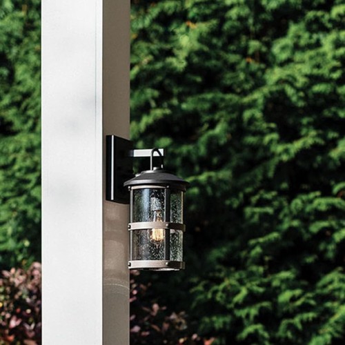 Cast aluminum cage style lantern allows for generous light near entryways for elegant curb appeal
