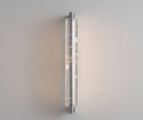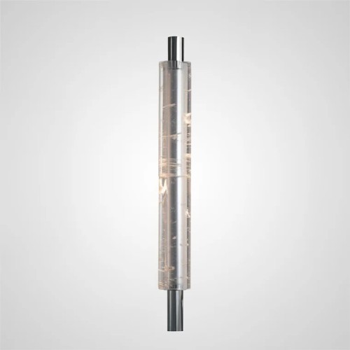 Inspired by refractions of light dancing on the horizon, Astre Fauvette is a handcrafted solid glass rod encased in linear brass form. Characterised by an uneven surface, Astre Fauvette refracts light to create a dynamic luminescence that appears animated.
