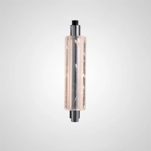 Inspired by refractions of light dancing on the horizon, Astre Fauvette is a handcrafted solid glass rod encased in linear brass form. Characterised by an uneven surface, Astre Fauvette refracts light to create a dynamic luminescence that appears animated.