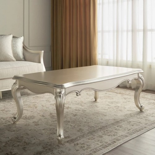 Transform your space into a cosy oasis with this eye-catching coffee table. It has a wide tabletop and ample space for your favourite books, beverages, and décor, making it the perfect centrepiece for your living room. The antique design of this table imbues character and grace to any space. Supported by carved legs curved at the ends, this table stands sturdy and strong, promising durability and stability. Whether enjoying a quiet morning coffee or entertaining guests in the evening, this coffee table enhances your experience with its understated beauty and practical layout.