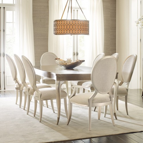 Avondale Dining Table (S C022-417-201) Dimension : P198 x 114 x 76cm Material : Top and aprons in Elegant Linen with Soft Silver Paint apron bead. Wood legs in Soft Silver Leaf. Metal ferrules Weight : Kg