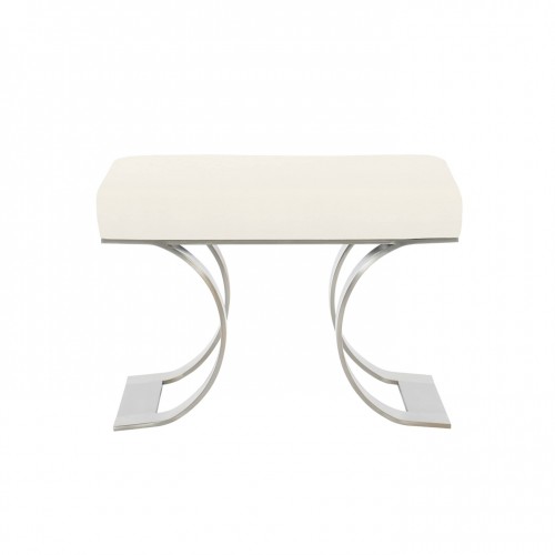 This bench is a graceful place to sit and relax at a vanity or the end of a bed. The legs utilize solid stainless steel for enduring strength and beauty, allowing for dramatic curves that are as eye-catching as the supportive. The legs are topped with a cleanly designed modern seat supported on a brushed silver wood-finished frame for an elegant modern look.