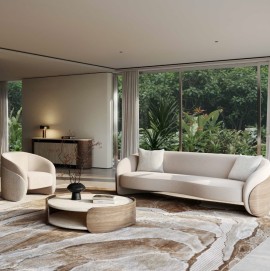 Modern art enters the living room with the Bastion collection, delivering effortless comfort with a sculptural aesthetic. Angular lines and soft curves combine with beautifully grained wood and chic neutral upholstery, for a look that suits a range of contemporary styles. stylish comfort with this barrel style chair, with a versatile swivel base that allows you to follow the conversation or rotate for relaxation. Comfortable curves wrap you in the embrace of a cushioned back and seat, and beautifully tailored upholstery makes this the chic centerpiece of any living room.