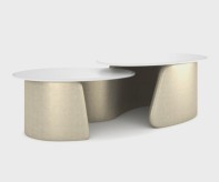 The Caracole Bauble Coffee Table adds a radiant touch of glamour with its fluid, jewelry-inspired silhouette. Two elliptical frosted glass tops, backed in white and kissed with delicate gold flecks, seem to float above a sculptural base. Finished in hand-applied Oracle Broken Leaf, the base shimmers with light-catching brilliance from every angle. Bold yet graceful, this piece is a true conversation starter for any modern living space.