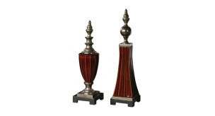 Ceramic finished in a burnt russet glaze with antiqued silver champagne accents and a matte black base. sizes: sm-5x17x5, lg-5x20x5.