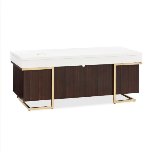 Architectural Lines: Crisp edges and gold-framed base bring a modern, elevated aesthetic to a classic desk profile.