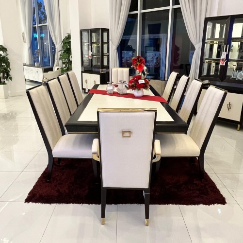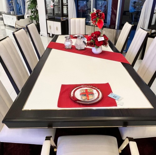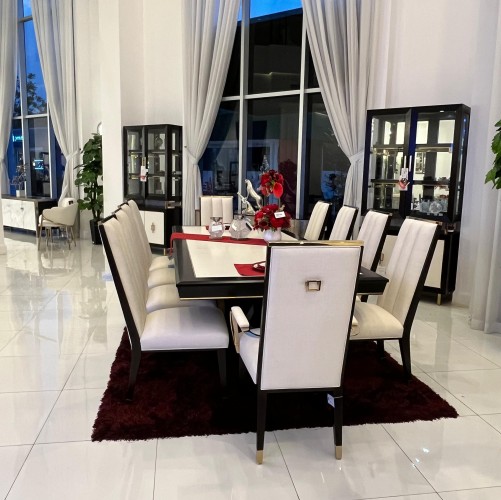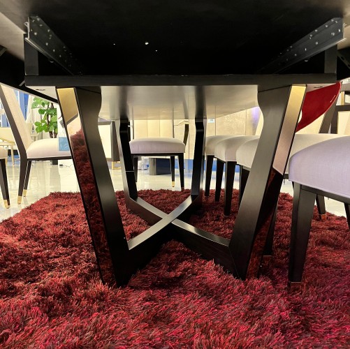 Gather around the Belmont Place Dining Table, where every meal becomes a lavish affair. The delicate dance of the tranquil white anigre veneer inlay with the profound depth of the espresso eucalyptus veneer evokes an ambiance of timeless elegance. The table’s apron, kissed by the soft gleam of Japan gold plated alloy, and the artful sleek centered base, stands as a testament to unparalleled craftsmanship.