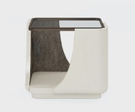 Be bold and a little bit different with this chairside table featuring an eye-catching asymmetrical form. Clean lines and a subtle curve highlight solid wood construction with a warm alabaster finish, in an open design that reveals a burnished bronze interior with a unique gesso pattern texture. The top features a slightly offset Carrera marble slab that provides a beautiful place to display a lamp or rest a drink.