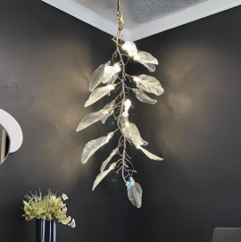 Cristal Laurier Chandelier Acrylic Leaf Led Brass Frame