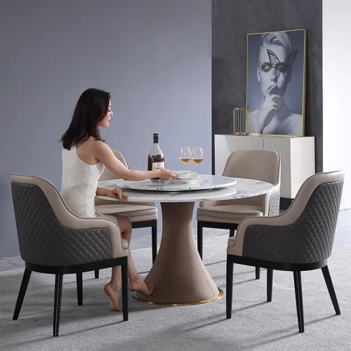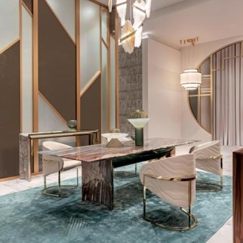 Meja makan adalah pusat dari ruang makan. Pilihlah meja yang sesuai dengan ukuran ruangan dan jumlah anggota keluarga. Meja berbentuk bulat cocok untuk ruangan kecil karena tidak memiliki sudut tajam yang memakan ruang, sedangkan meja berbentuk persegi atau persegi panjang ideal untuk ruangan yang lebih besar.
