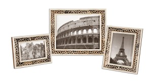 This Photo Frames from the Carnelia collection by Uttermost will enhance your home with a perfect mix of form and function. These frames are made of pieced bone and horn with a burned giraffe pattern. Holds photo sizes: 4x6, 5x7 & 8x10. Frame sizes: Sm-7x9, Med-8x10, Lg-11x13.