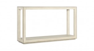 Spark your inner Zen and create a tranquil retreat with the help of the Cascade Console Table, offered in a light and airy neutral color palette combining the Pebble Beach and Terrain finishes. Crafted of tactile lacquered burlap with an Oak Veneer wood top and trim, the table is finished on all sides so that it can float in a room, and the base can serve as a shelf. Designed to interject a sense of calm and tranquility into interior spaces, the Cascade Collection creates an elegant - yet livable Ð retreat from our modern day, fast-paced lifestyles. Characterized by its light and airy neutral color palette and use of mixed materials including oak, lacquered burlap, metal accents and champagne-tone hardware, the collection\'s modern styling can easily find its way into a variety of interiors across the country. As soothing as water falling from a steep rocky slope, the Cascade Collection was designed to spark Zen, tranquility and calmness in any living space.