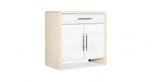 With a delightful two-tone finish blending the serene sand color of the lacquered burlap finish on the case with the chalk-colored drawer and door fronts, the Cascade Credenza is a perfect piece for the kitchen, dining area, hallway or other spaces in your home. Add a livable modern touch to any space, offering storage function with two doors with soft-close hinges and one adjustable shelf behind each pair of doors. Designed to interject a sense of calm and tranquility into interior spaces, the Cascade Collection creates an elegant - yet livable Ð retreat from our modern day, fast-paced lifestyles. Characterized by its light and airy neutral color palette and use of mixed materials including oak, lacquered burlap, metal accents and champagne-tone hardware, the collection\'s modern styling can easily find its way into a variety of interiors across the country. As soothing as water falling from a steep rocky slope, the Cascade Collection was designed to spark Zen, tranquility and calmness