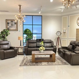 Give your favorite room an added touch of luxury with this stylish sofa. The lush sofa features a reclining design with a drop down tea table that creates the perfect space for drinks and snacks when you're snuggled up for the big game or a great movie. The scratch and mildew resistant synthetic leather upholstery with a rich, dark brown finish gives the piece a plush sophistication, perfect for adding comfort and style to your home.