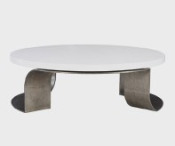 The Catalina coffee table features a superbly modern silhouette with a sculptural cast aluminium base in graphite finish and a maple veneered top in white plaster finish. The generous size is ideal for larger spaces.