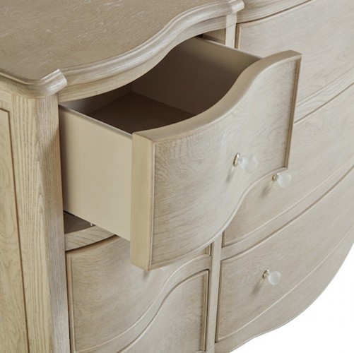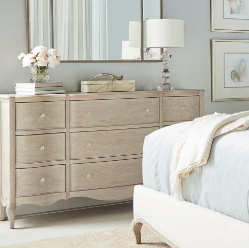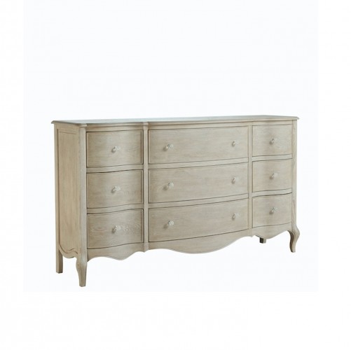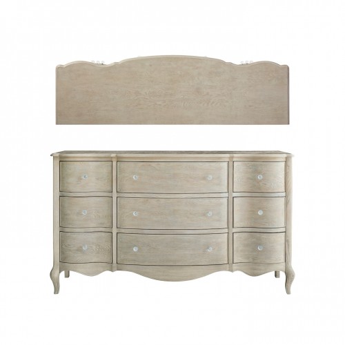 The collection features graceful curves and scalloped edges, polished stone, and a palette of warm neutrals, delivering a rustic yet refined appeal. Discover all the continental charm this collection has to offer. Feature: Blanched Oak and Sundance Gold Dimension :W 178CM D 53CM H 103CM Material : Ash Solids with Cluster Oak Veneers, fabric Weight : 93.2 kg by Malindafurniture