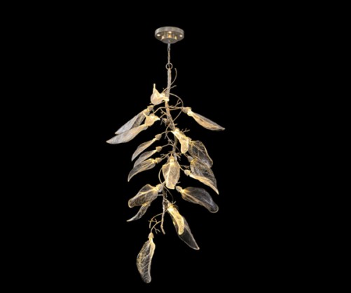 Decorative leaves have inspired the creation of the unique Cristal Laurier Leaf Shape Gold Chandelier. Finished in a high quality distressed gold painted metal. Details: Dimension : 220 x 220 x 91 cm Material : Metal Weight : 24,44 kg By Malindafurniture