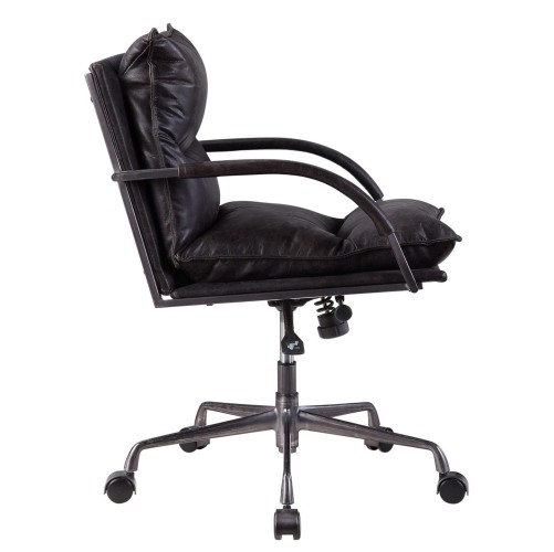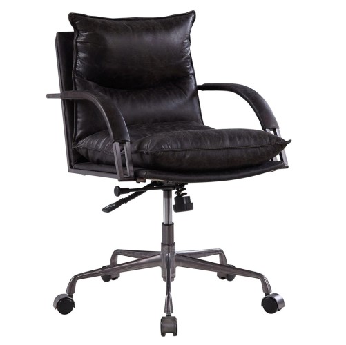 If you want an adjustable office chair with flair and comfort, this task chair rises to the occasion, with several ergonomic Features : to boot. Firm seat and back that provide the support you need for those long hours of sitting down. Its luxurious leather upholstery is a head-turner that’s also a easy to care. With one easy push of the lever, adjust its height to complement the desk you’re sitting at.