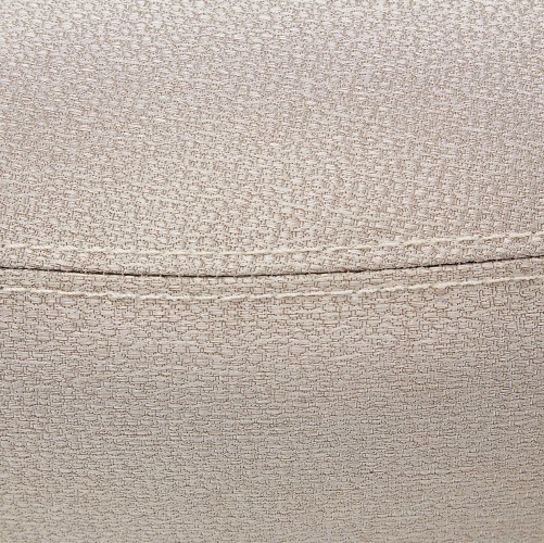 Bench seat and body are upholstered in woven ivory fabric that matching the headboard