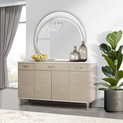 Create the dining experience of a lifetime! The Eclipse Sideboard and Mirror set creates a display guaranteed to brighten your dining room and add the convenient storage space you need.