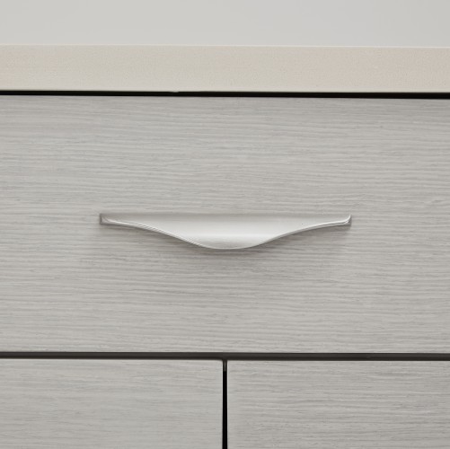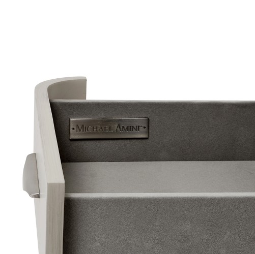 (3) Drawers are velvet lined with self closing glides and handles finished in brushed nickel