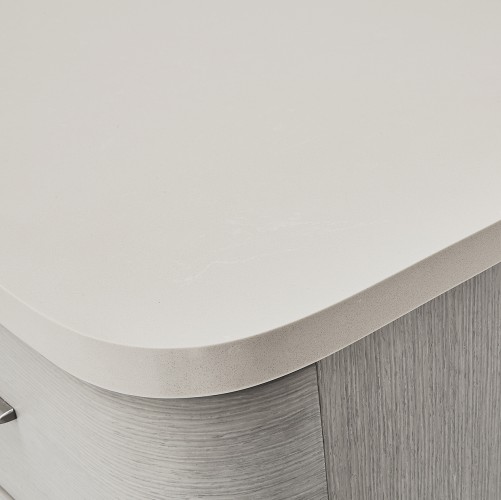 Top is made with cultured marble, and case bottom is trimmed in stainless steel