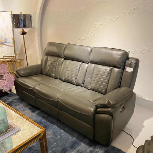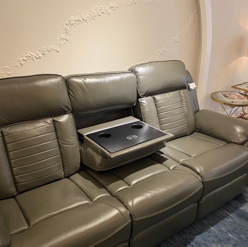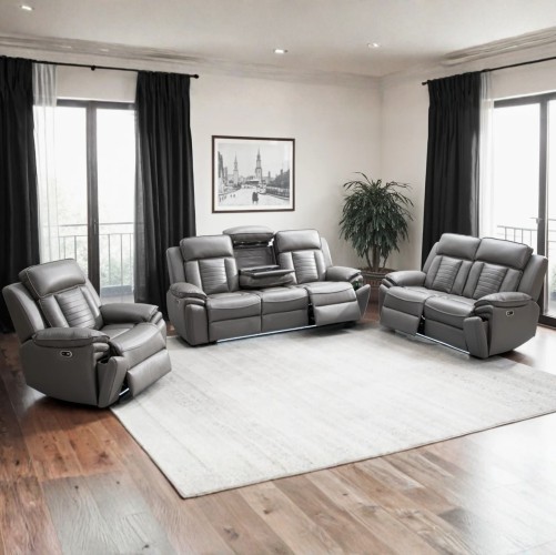 ELLORE - 3 SEATER SOFA RECLINER DROPDOWN TABLE-LED (LEATHER/VINYL)-GREY ( CH 03-8449-30-1510)
