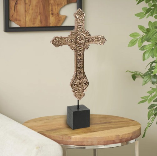 ELYSIAN LARGE COPPER CROSS ON STAND Dimension : 33cm W x 17cm D x 72cm H Material : Metal - Iron By MalindaFurniture