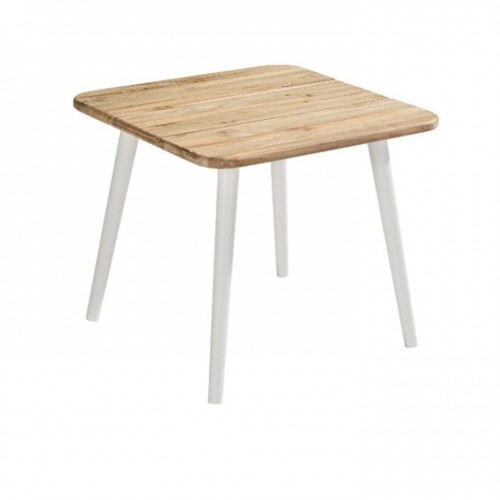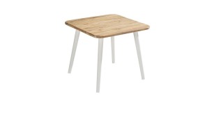Simplified to its essentials, the slim-line Darrow End Table is sized to fit on a patio, rooftop, or balcony. The welded aluminum frame, powder-coated in white, supports a top made of teak reclaimed from old boats.