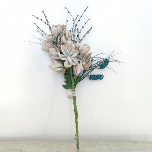 A striking filler consisting of sprigs of pine needles punctuated by blooming cotton buds. Man made filler gives the beautiful look of a natural product without the mess. Perfect for a tall floor vase, use one for a vase with a small mouth, or bundle several for a more dramatic effect. Sold by the generously sized stem.