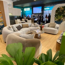 Free-flowing and organic, Fanciful’s soft curves are artfully accented by a quilted ginkgo leaf pattern, fanning out along the back and sides. Its nature-inspired design adds graphic interest and dimension, complemented by a curved plinth base wrapped in pearl vinyl. Expertly tailored in tonal gray performance fabrics, inside and out, and trimmed in contrast welt. For a finishing touch, we’ve added accent pillows in soothing neutral hues and a subtle pattern. Pair with the matching Fanciful swivel chair.