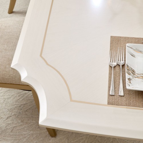 Distinctive Design: Sculpted curves and painted trim elevate the table’s visual allure.