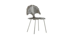 Make an artistic statement in your dining space with this stunning metal chair. This finely detailed piece is crafted from cast aluminum with a gingko leaf pattern on the seat and back. The shiny nickel finish adds an industrial sheen that's guaranteed to turn heads.