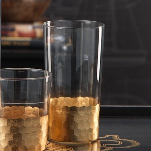 Update your glassware collection with the chic and simple Vitorrio Tumbler Glasses. Featuring gold tone honeycomb patterns, these clear glasses are attractive enough to leave on display when not being used to serve specialty drinks. Pair them with other pieces from the Vitorrio Glassware series for an elegant look that complements formal kitchen decor.