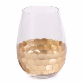 Fez Cut Stemless Wine Glass With Gold Leaf
