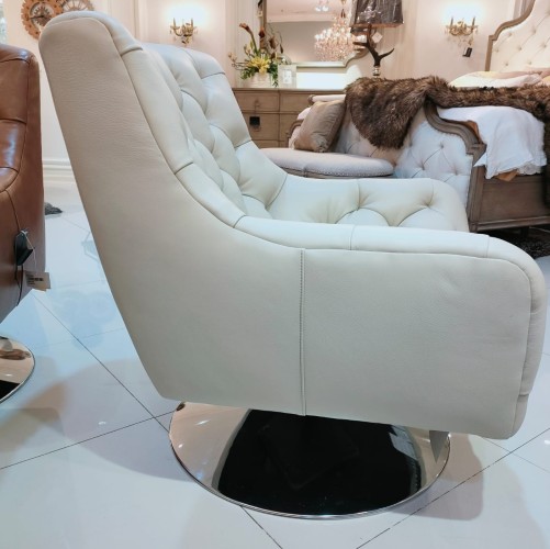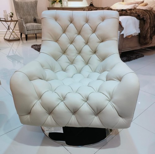 This product will have your interior looking fabulous. With its quilted sophistication in sumptuous leather and its sleek swivel base in polished stainless steel, this chair will add elegance to your home décor.