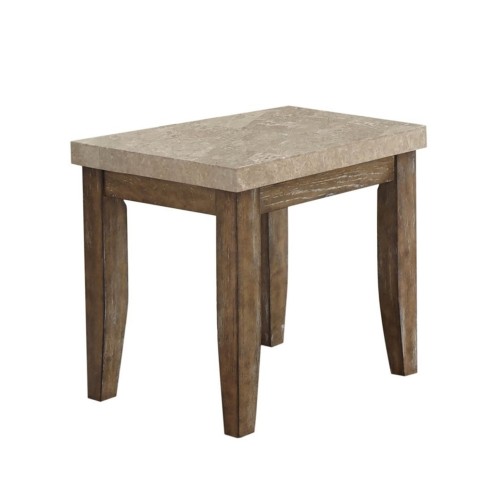 Add a rustic touch to your space with the Franco End table. The design features a beautiful marble top and distressed block legs. The Franco end table is constructed of white vertebra solids and ash veneers with a white marble tile top The base features a distressed gray-washed driftwood finish.