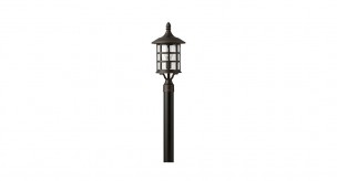 Traditional oil rubbed bronze 1-light post lighting with seeded clear glass shade.