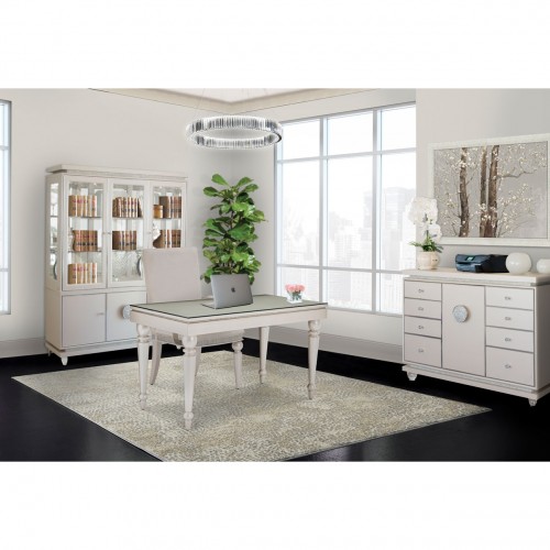 Glimmering Heights is made with the shine of Hollywood\'s timeless luster. Finished with brilliant crystal, rich vinyl and ivory tones, this collection brings a glamour into your home that rivals every luxury look. Features : Drawer fronts have metal edge trim for added visual appeal. There is a band of crystallized facets wrapped around front of the vanity. Soft closing glides allowing for smooth operation. Drawers are velvet lined. Decorative front feet are sturdy acrylic. Details : Dimension : 138 x 72 x 79 Material : Wood Weight : 67 kg by Malindafurniture